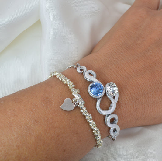 Per i nostri bracciali abbiamo scelto l'alluminio perché è un metallo luminoso che non annerisce e l'ottone per il suo colore dorato.