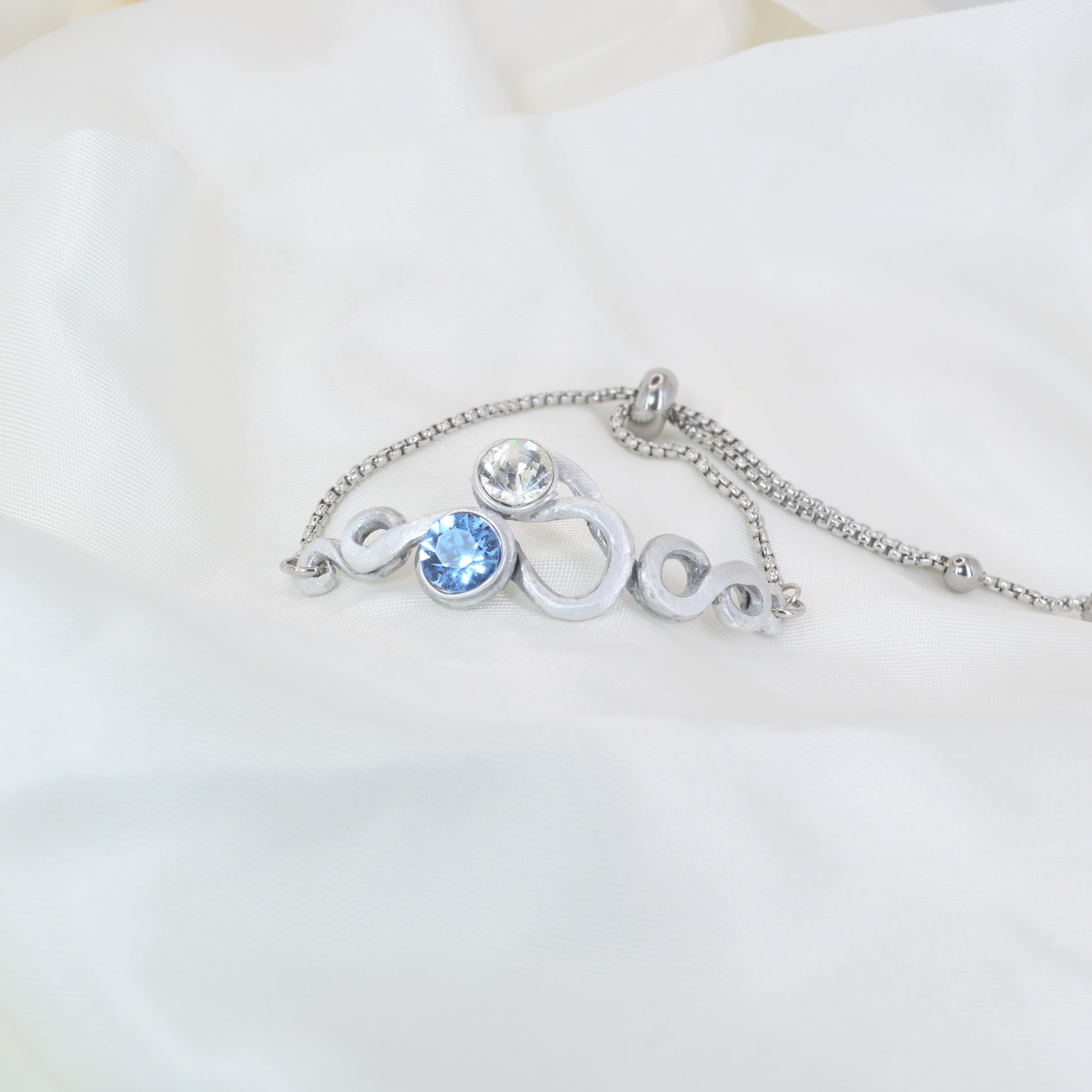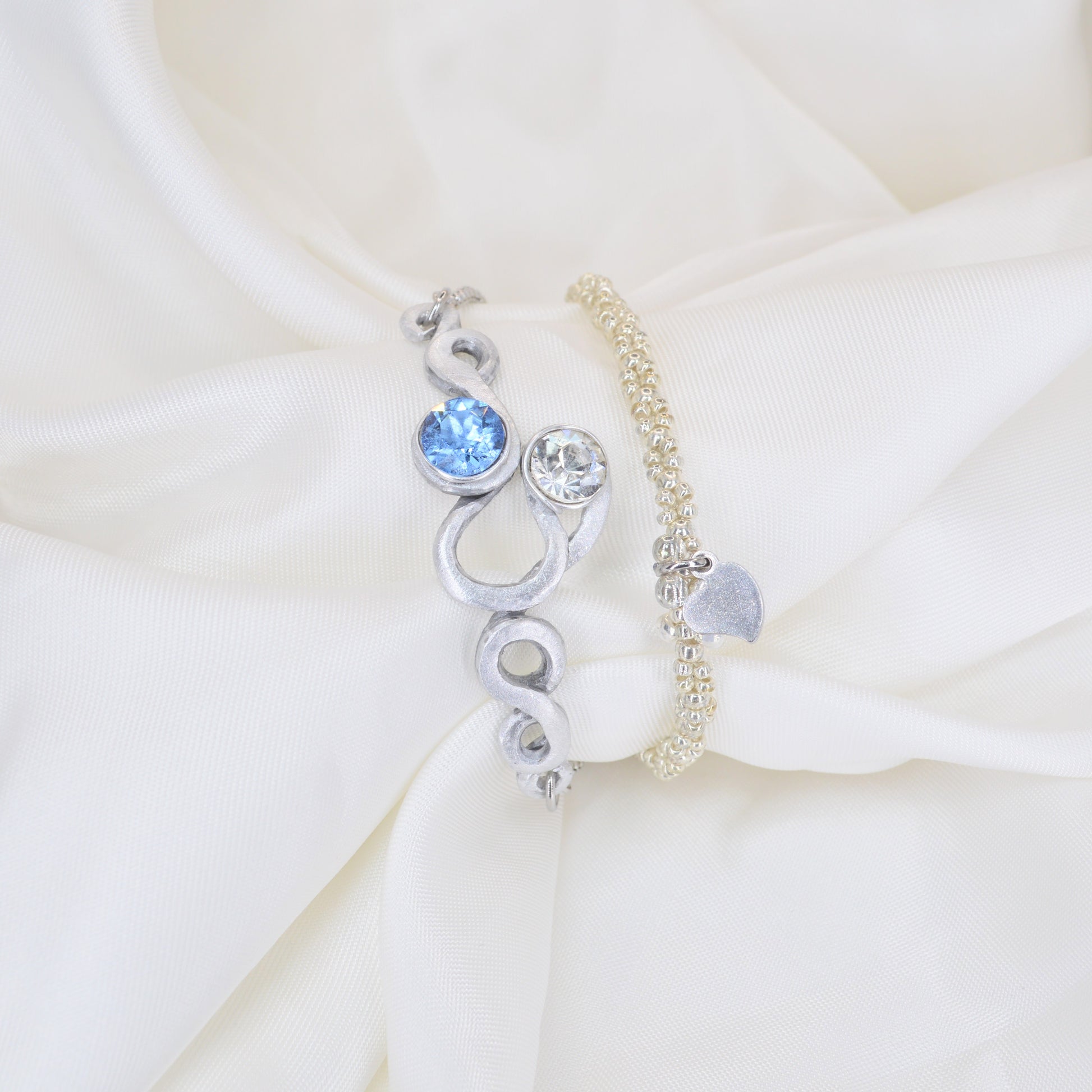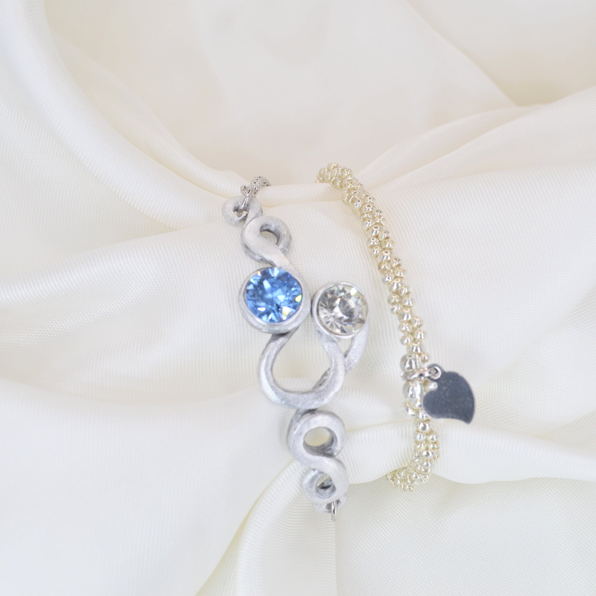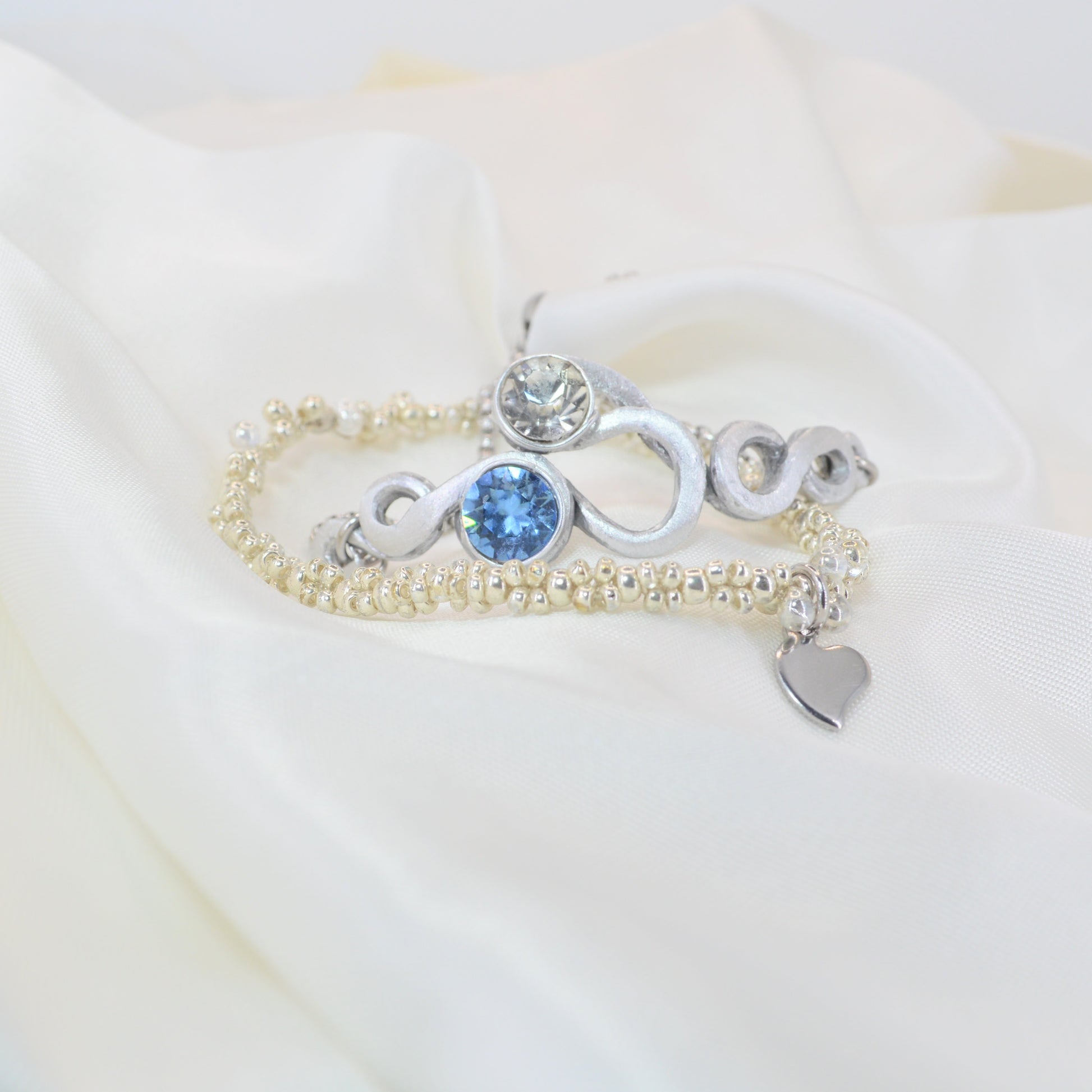 Coppia di braccialini in alluminio lavorato a mano , Swarovski e perline. Chiusura scorrevole in acciaio inossidabile.