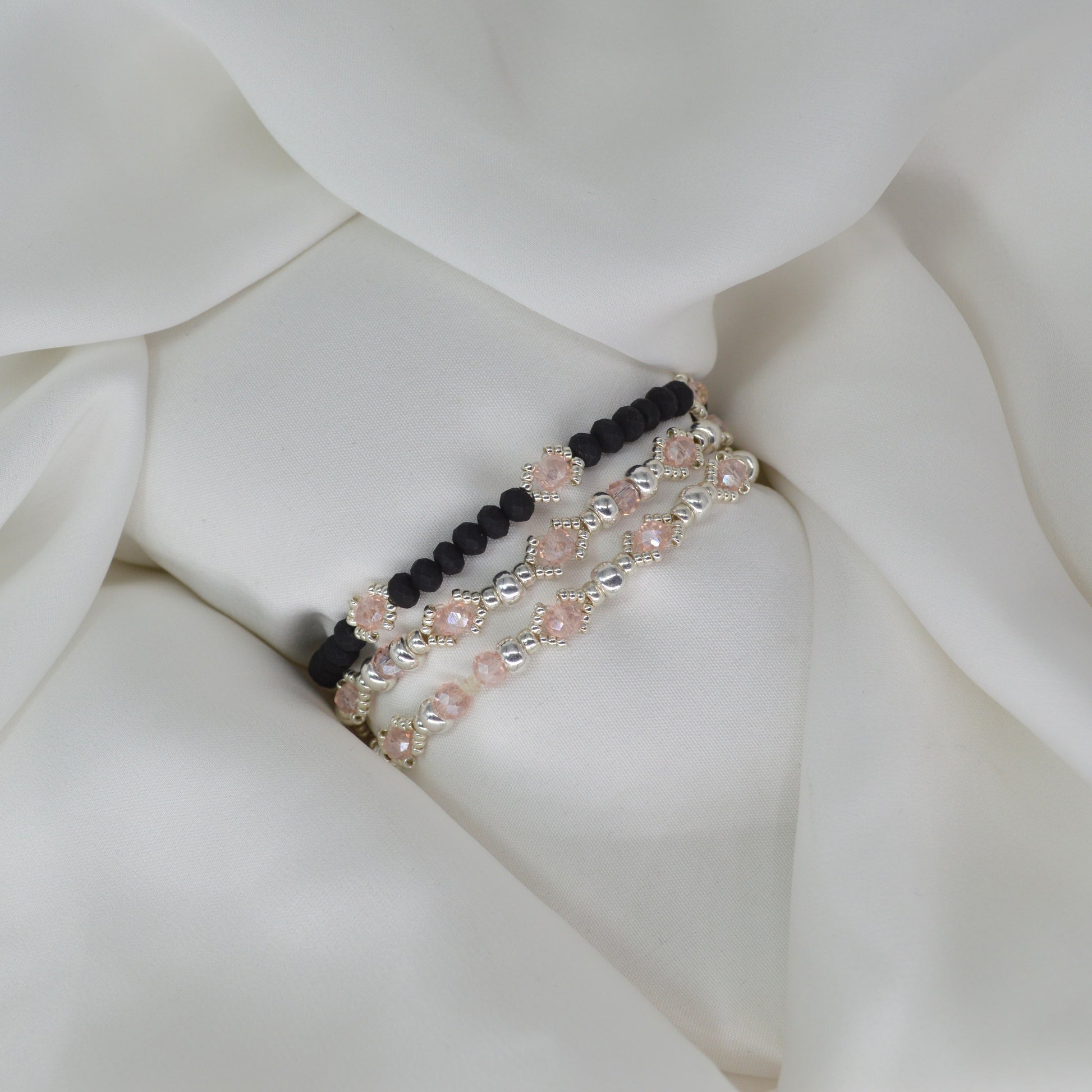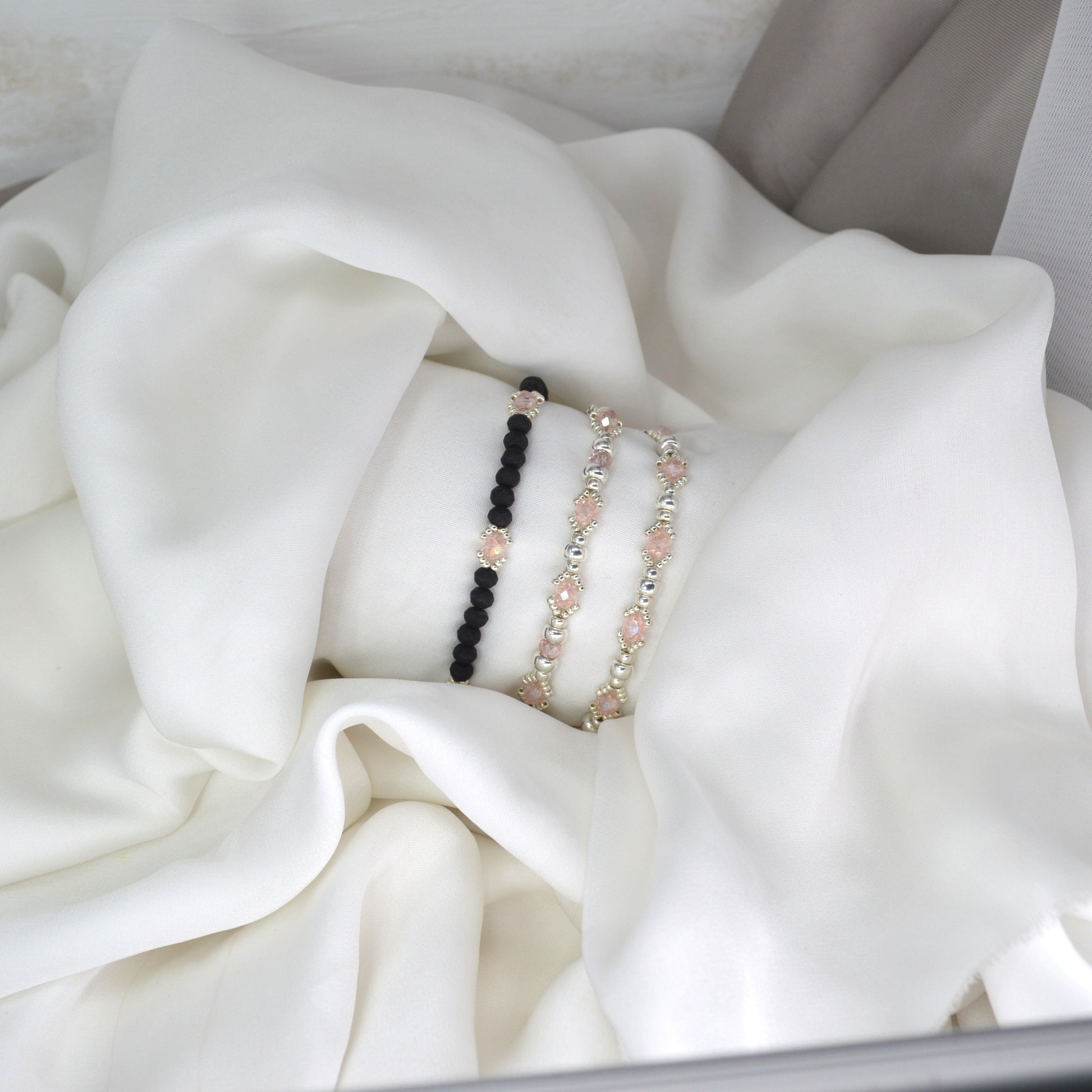 Tre braccialini elastici, doppio elastico per maggiore resistenza.
